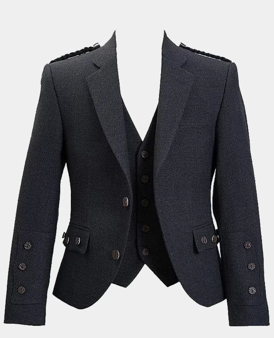 Crail Charcoal Tweed Klashich Kilt Jacket with Vest